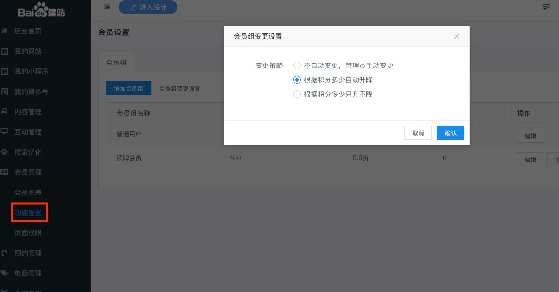 商品会员价可以实现不同的会员购买有不同的折扣,首先进入后台 -> 会员管理设置不同的会员等级,同时设置不同的会员等级需要的消费积分,也可以设置升级模式。