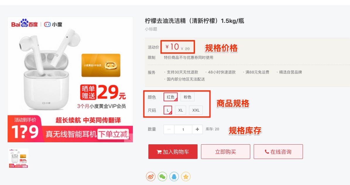 需要注意的是每次保存商品都会重新生成商品规格信息,这样用户保存在购物车的规格商品将无法下单,建议减少对规格商品的修改